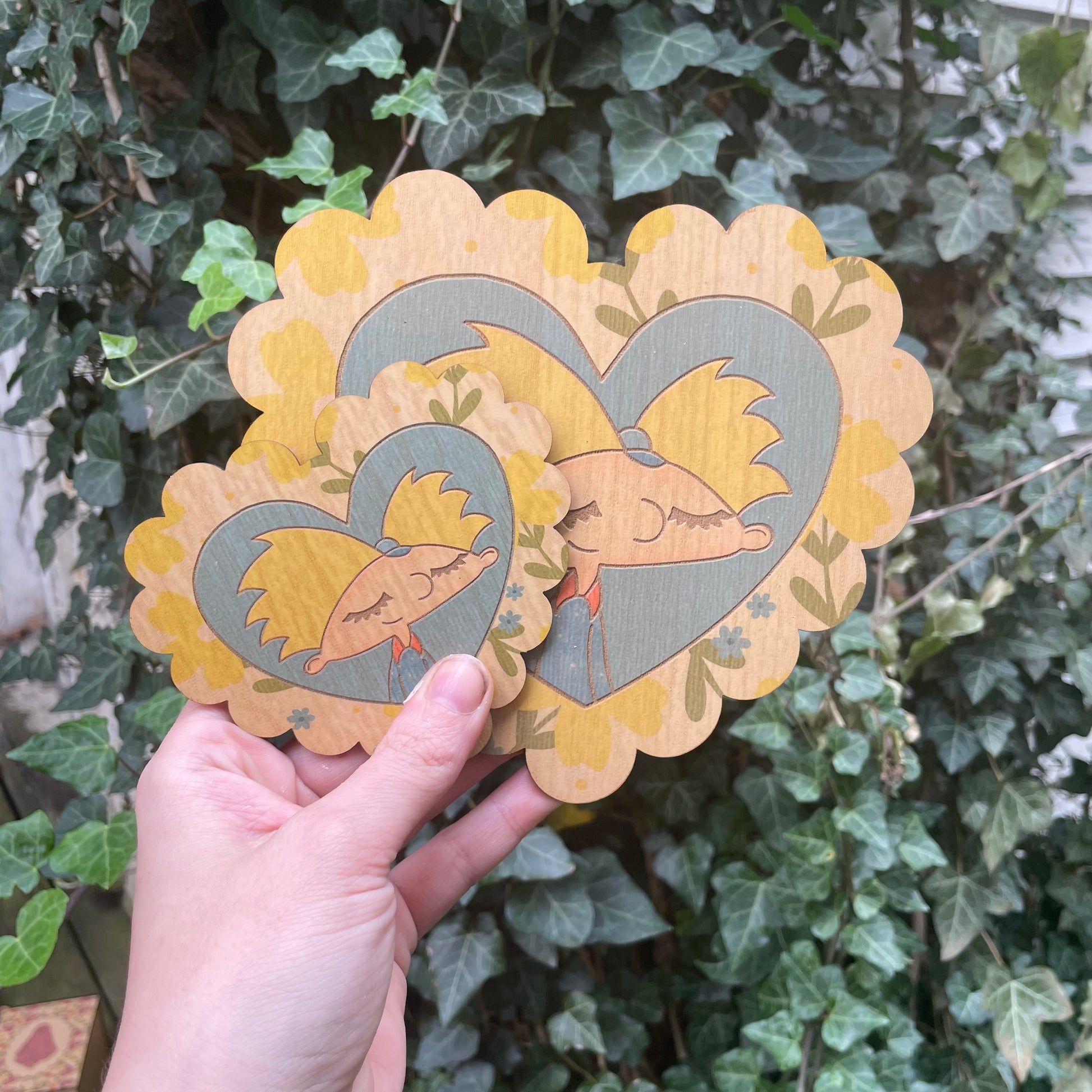 These maple wood wall hangings feature hand-drawn characters that have been sublimated onto a faux wood surface. Choose from a large size at 7”x6” or a small size at 4.25”x3.7”. Plus, we've even included a command strip for easy hanging!